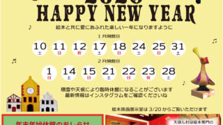 皆様こんにちは!寒い寒い冬に突入しておりますが、皆様いかがお過ごしでしょうか?えほん村の1・2月のえほん村だよりUPいたします。1・2月は土・日・祝がOPEN日となっております。暖かくしてお越しくださいね🎵